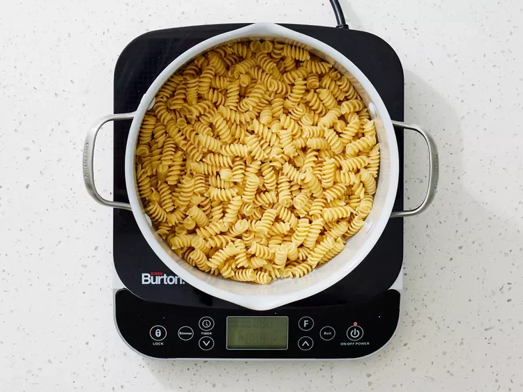 1. Boil the pasta, drain, and return to the pot.